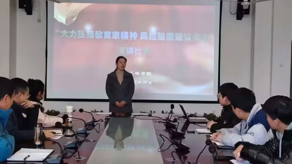 为大力弘扬“心有大我、言为士则、启智润心、勤学笃行、乐教爱生、胸怀天下”的教育家精神,根据学校工会安排部署,yl23411永利集团官网于11月29日在机电楼二楼会议室举办“大力弘扬教育家精神 勇担强国建设使命”主题演讲比赛。学院党总支副书记(主持工作)丁迎春等领导老师担任评委。