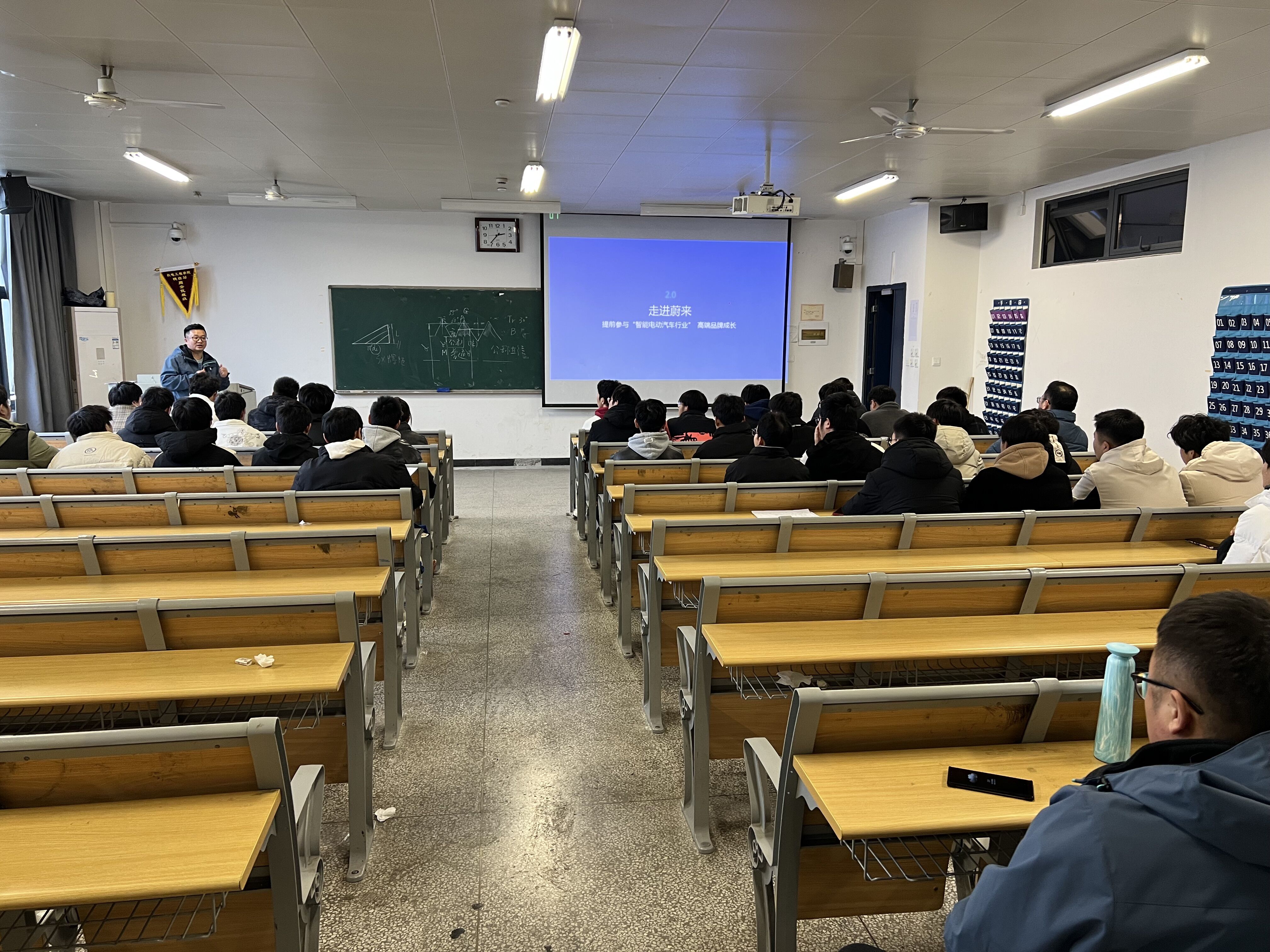 活动开始时,蔚来朱总首先向参会学生介绍了企业的相关文化。朱总详细介绍了蔚来在技术领域的优势以及对员工的重视程度。他强调了企业的创新氛围、团队合作精神以及持续学习的重要性。同学们对蔚来的企业文化表现出了浓厚的兴趣和好感。