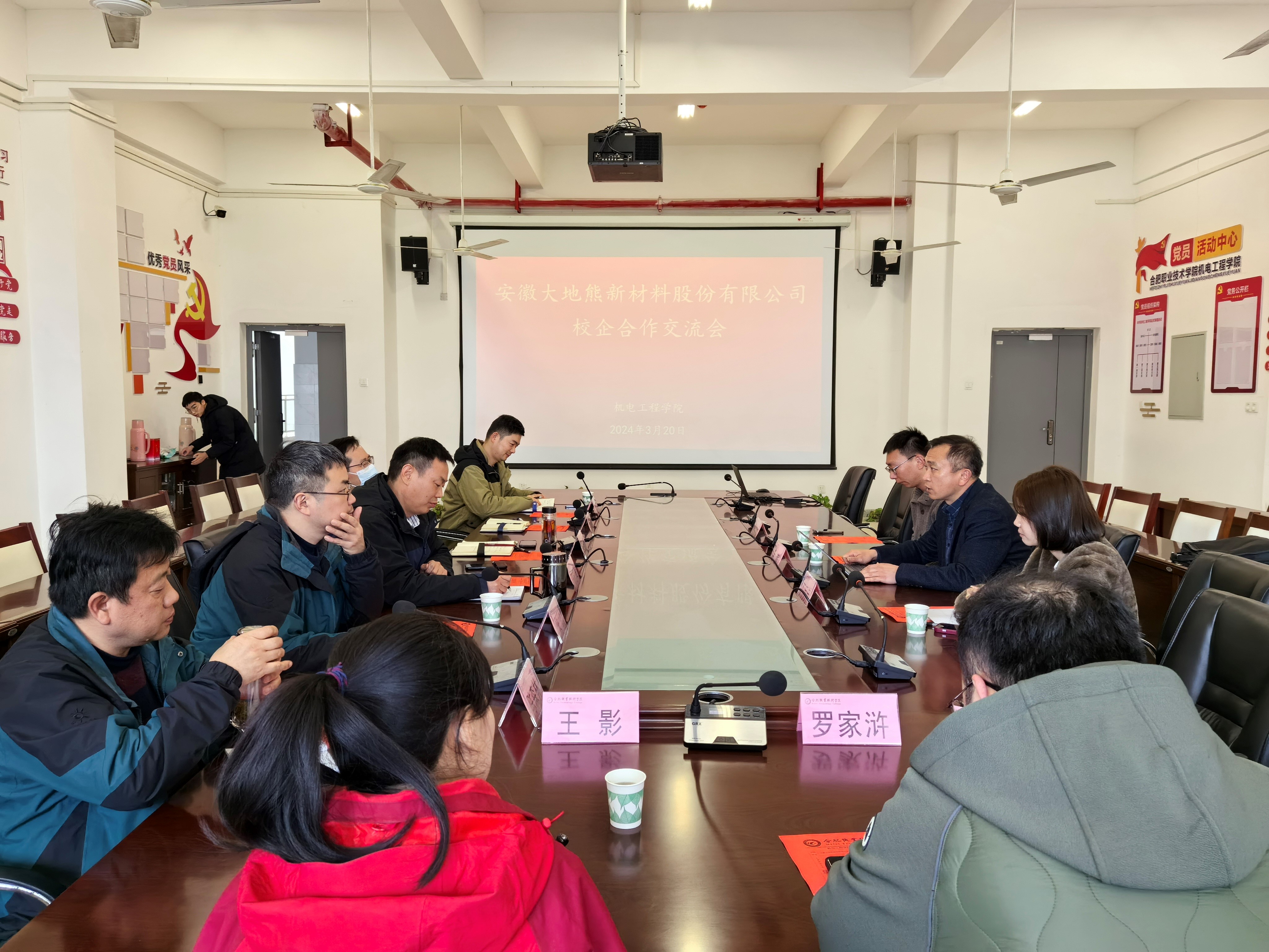 3月20日下午,安徽大地熊新材料股份有限公司行政总监吕涛等一行3人来访yl23411永利集团官网,学院党政负责人及相关教研室专业老师人参加了此次对接,双方就产学研合作、人才培养及学生实习就业等方面工作进行了深入的交流与探讨。