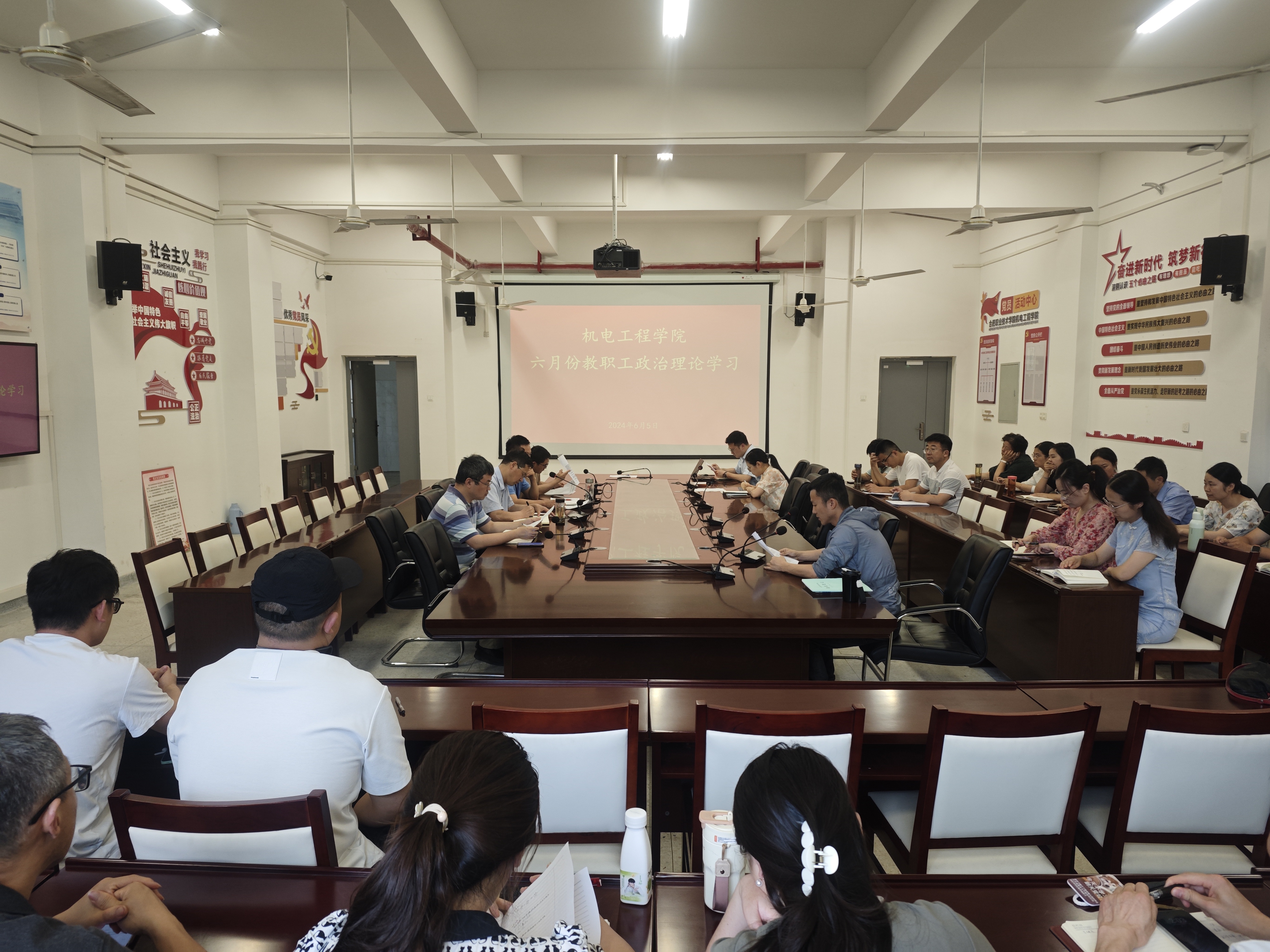 6月5日下午,yl23411永利集团官网在机电楼二楼会议室组织召开六月份教职工政治理论学习暨党纪学习教育读书会,学院全体教职工参加,会议由该院党总支副书记(主持工作)丁迎春主持。