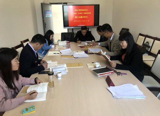 11月4日上午,yl23411永利集团官网党总支在机电楼201会议室举行“不忘初心、牢记使命”主题教育第三次专题读书班。在前期个人自学、读原著、学原文、悟原理的基础上,对照《中国共产党章程》,《关于新形势下党内政治生活的若干准则》《中国共产党纪律处分条例》进行自我检查。该院党总支委员、教工党支部委员、学生党支部全体党员及校主题教育第七指导组成员陈辛琦参加学习活动。学习班由该院党总支副书记(主持工作)王克勇主持。