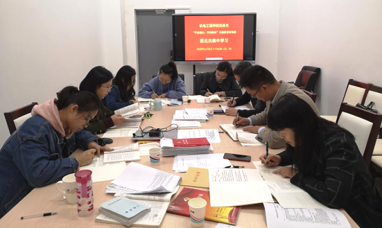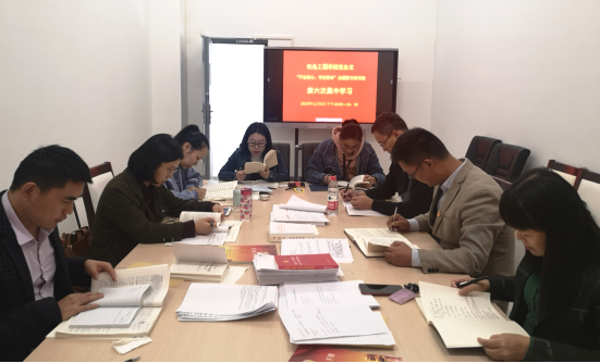 11月5日,yl23411永利集团官网党总支利用上下午的时间在机电楼201会议室举行“不忘初心、牢记使命”主题教育第五、第六次专题读书班。继续围绕《习近平关于“不忘初心、牢记使命”重要论述摘编》(以下简称《摘编》),聚精会神读原著、学原文、悟原理,以理论滋养初心、以理论引领使命。该院党总支委员、教工党支部委员、学生党支部全体党员及校主题教育第七指导组成员陈辛琦参加学习活动。读书班由该院党总支副书记(主持工作)王克勇主持。