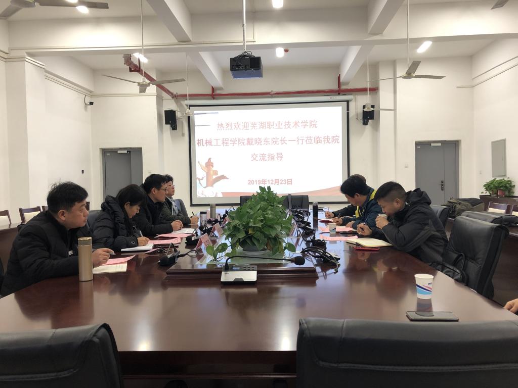 12月23日下午,芜湖职业技术学院机械工程学院院长戴晓东及相关专业课老师来永利官网交流学习,就人才培养、专业建设和学院发展等问题进行讨论。yl23411永利集团官网副院长胡木林(主持工作)主持会议,副院长孙新梅、机械教研室主任徐滨、模具专业负责人陈森林出席本次学术交流会。