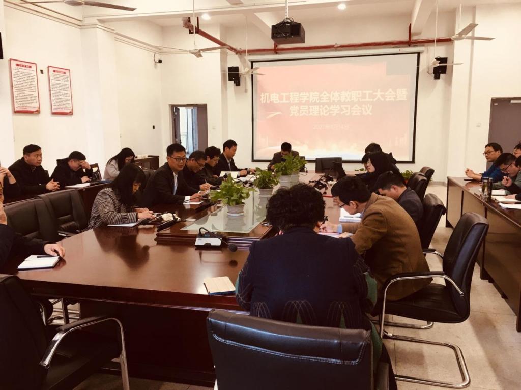 4月14日下午,yl23411永利集团官网在机电楼二楼会议室召开全体教职工大会暨四月份党员理论学习会议。校党委委员、副校长孙兴林及全体教职工参加会议,会议由该院党总支副书记(主持工作)王克勇主持。