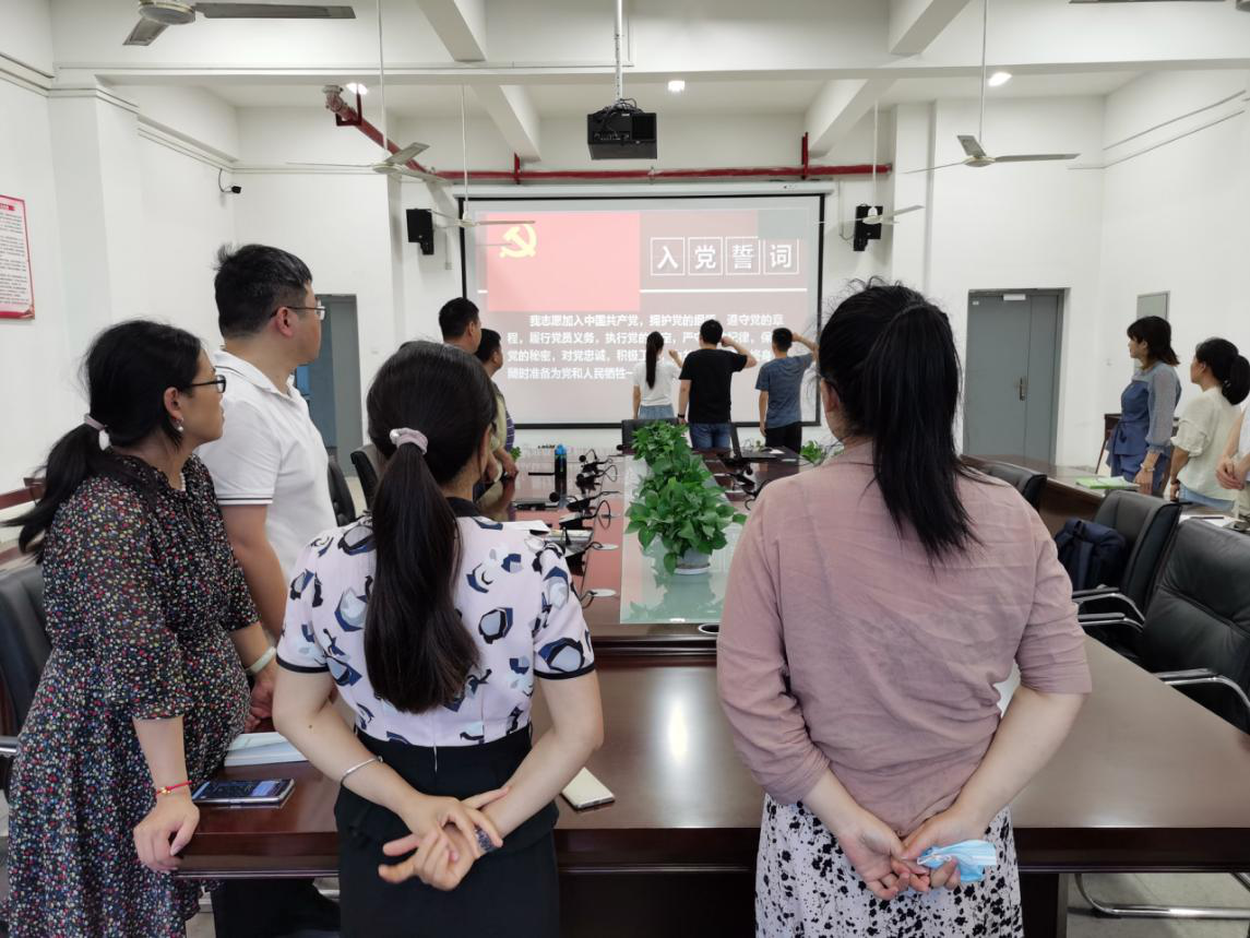 接着孙新梅书记希望两位同志今后一是以党员的标准严格要求自己,积极融入到党的群众路线教育链实践活动中,争取早日成为真正的优秀共产党员;二是继续加强党的理论知识学习,认真履行党员义务,在工作中处处要起到党员模范带头作用。最后教工支部组织委员穆文静带领两名同志面向党旗进行入党宣誓。