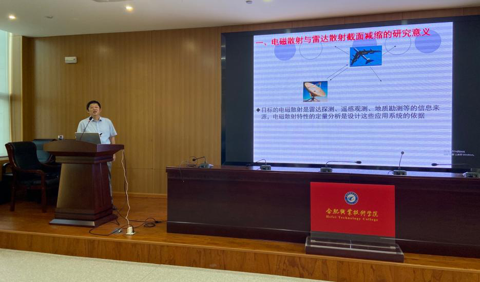 报告会上,师生们根据防疫要求,井然有序。孙玉发教授从隐身技术和反隐身技术开始,通过介绍分析方法以及生动的案例,深入浅出的讲授了电磁散射与雷达散射截面减缩的研究意义。讲述的同时积极和师生们探讨,激发同学们对电磁学的学习兴趣,并依据自身研究,对未来提出展望,鼓励同学们好好学习学以致用,致力于我国电磁技术的研究开发。