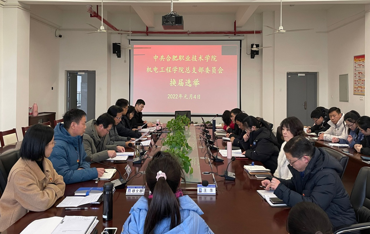 根据《关于同意中共合肥职业技术学院yl23411永利集团官网总支部委员会及下辖党支部换届选举和新一届委员会委员候选人、党支部书记候选人人选的批复》的要求,yl23411永利集团官网党总支于2022年1月4日下午在机电楼二楼会议室召开党总支换届选举大会,校党委委员、办公室主任王海和学院全体党员出席大会,会议由学院副院长(主持工作)胡木林主持。