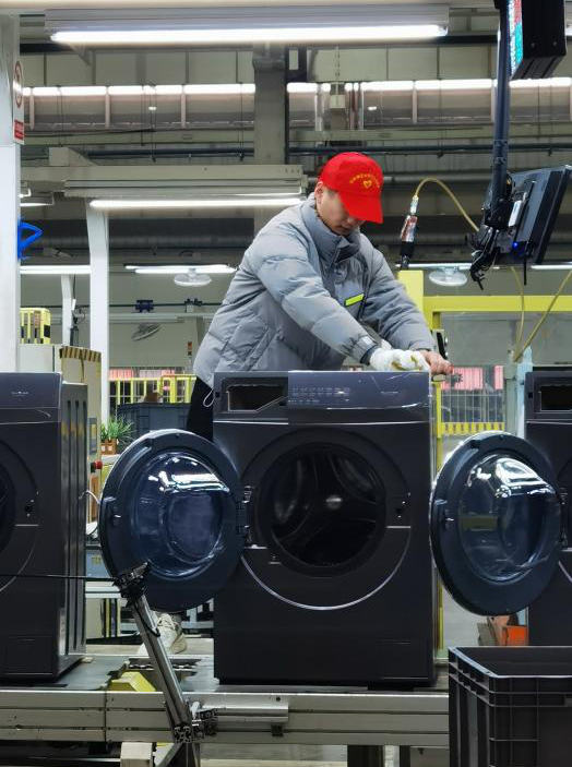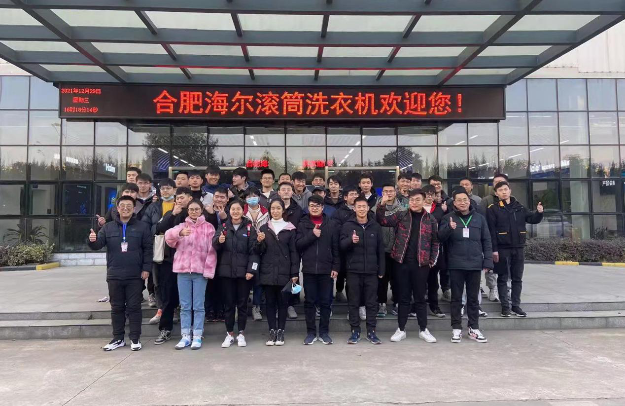 此次活动得到了合肥海尔滚筒洗衣机有限公司的大力支持,学生分两批进驻工厂生产线,他们带上手套,穿上防护服,亲身参与到生产之中,分散在不同的岗位,与海尔员工一起工作、交流。虽然劳动的过程是辛苦的,但是看着一台台洗衣机下线,即将走到千家万户,同学们的自豪感洋溢在脸上。