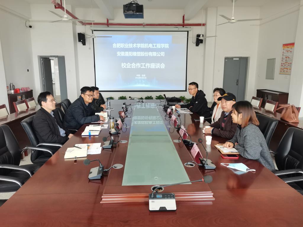 为进一步加强校企合作,深化产教融合,3月2日上午安徽晨阳橡塑股份有限公司董事长周相庭一行4人来访yl23411永利集团官网,yl23411永利集团官网党总支书记王克勇,院长胡木林和相关教师参加了此次对接。
