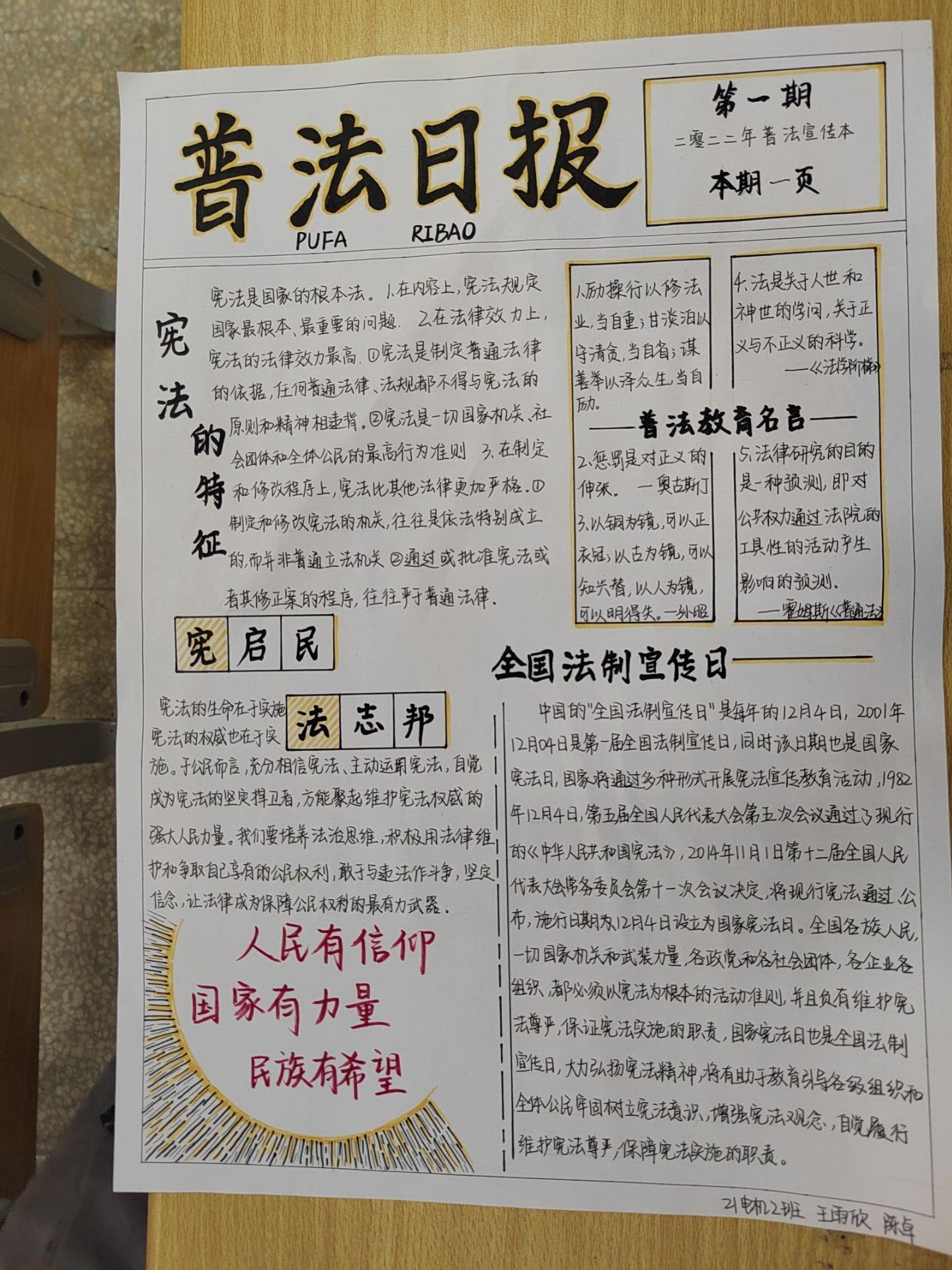 今年4月15日是我国的第七个全民国家安全教育日,为推动国家安全法律法规进校园,同时结合对当前疫情防控工作的宣传教育,4月14日—15日在教学楼yl23411永利集团官网学生会成功举办了班级普法宣传、手抄普法宣传报、学生干部普法竞答等专题系列活动。