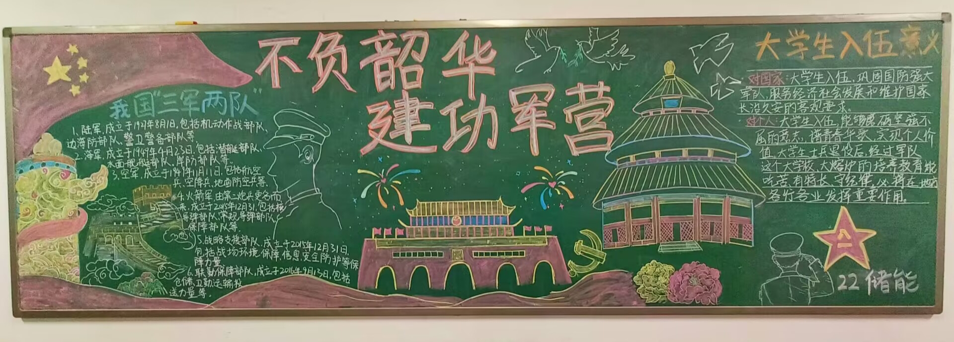 为响应国家号召,激发永利官网大学生参军报国的热情,调动学生报名参军入伍的积极性,树立建设和保卫祖国的志向,yl23411永利集团官网于3月3日开展了以“立志报国,踊跃从军”为主题的黑板报评比活动。