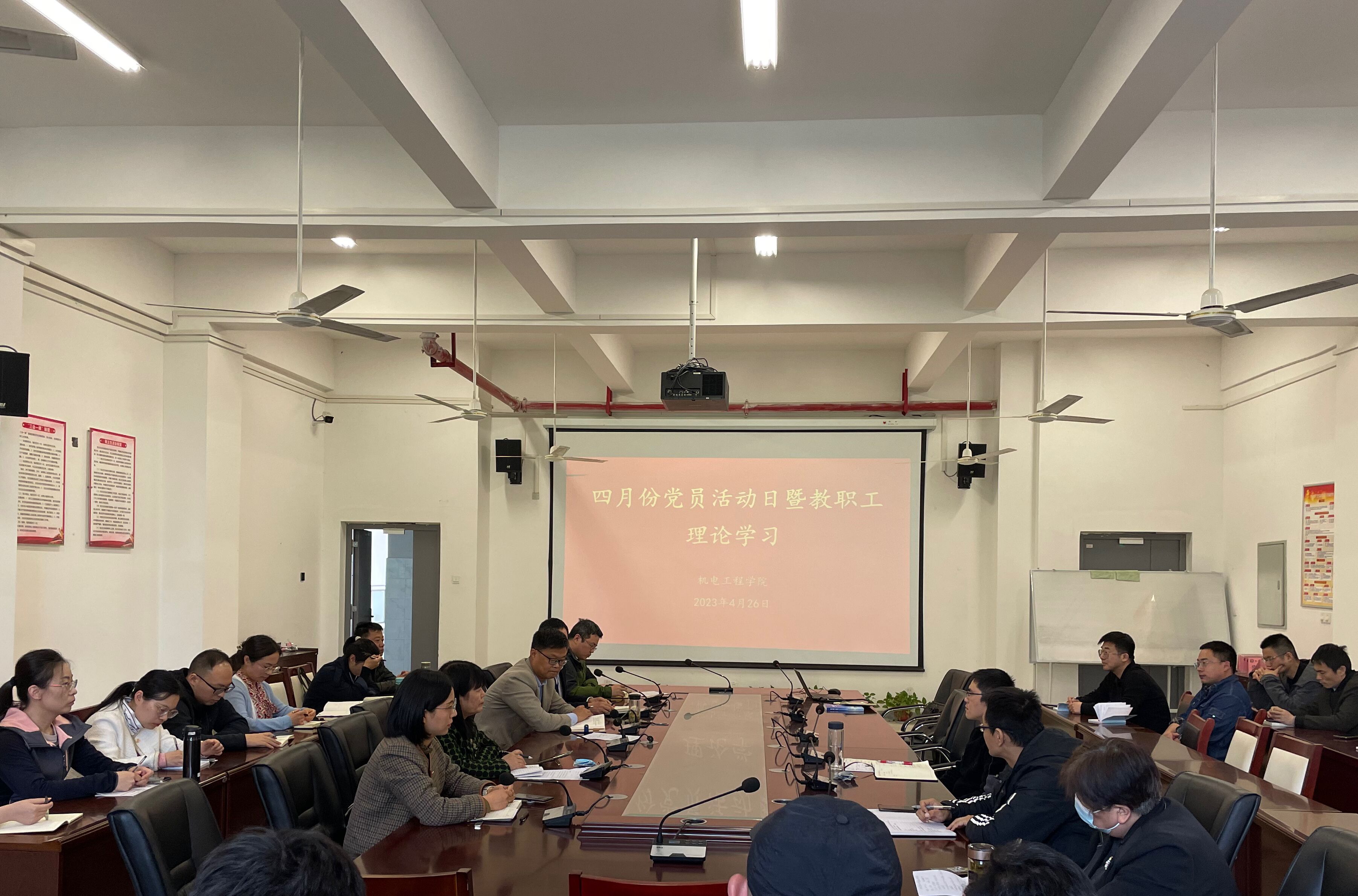 4月26日,yl23411永利集团官网在机电楼二楼会议室召开四月份党员活动日暨教职工理论学习活动,yl23411永利集团官网全体教职工参会,会议由党总支书记王克勇主持。