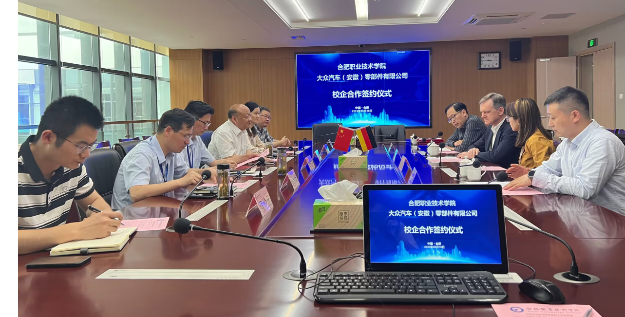 5月18日下午,我校与大众汽车(安徽)零部件有限公司校企合作签约仪式在行政楼627会议室隆重举行。副校长周晓隆、教务处处长窦红平、科技处副处长高云、yl23411永利集团官网院长胡木林、副院长宋铂,大众汽车(安徽)零部件有限公司商务总经理Oliver Harmann、人事经理郑尧天、商务总经理助理刘婉峤、大众汽车自动变速器(天津)有限公司双元制项目负责人张志强参加此次签约仪式,会议由胡木林主持。