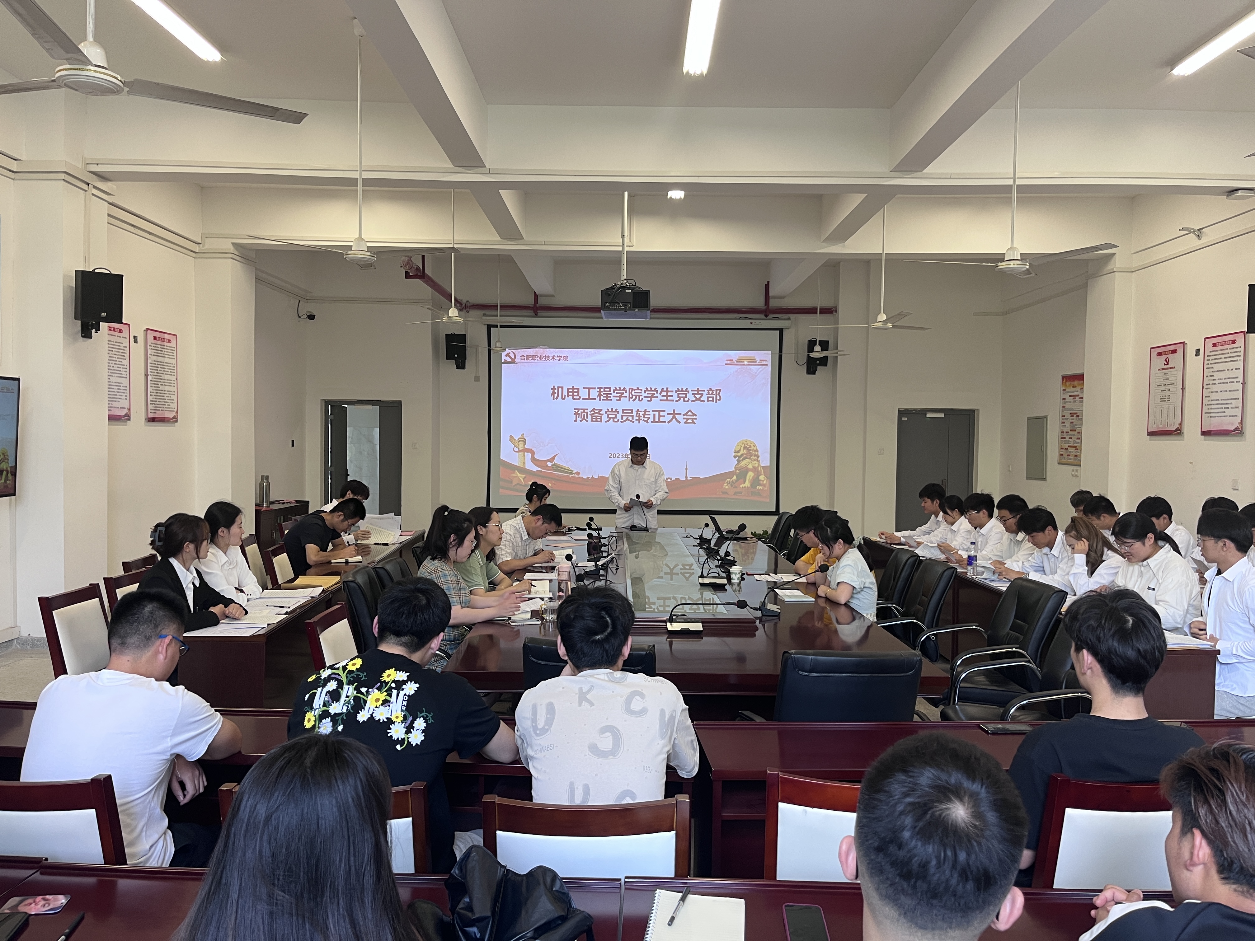 6月8日下午,经学院党总支批准,yl23411永利集团官网学生党支部在机电楼二楼召开了预备党员转正大会。会议通过了陈金富等20名同志预备期满转为中共正式党员的决议。本次会议由支部书记张开主持,学院学生党支部全体党员、入党介绍人、预备党员参加了此次大会。