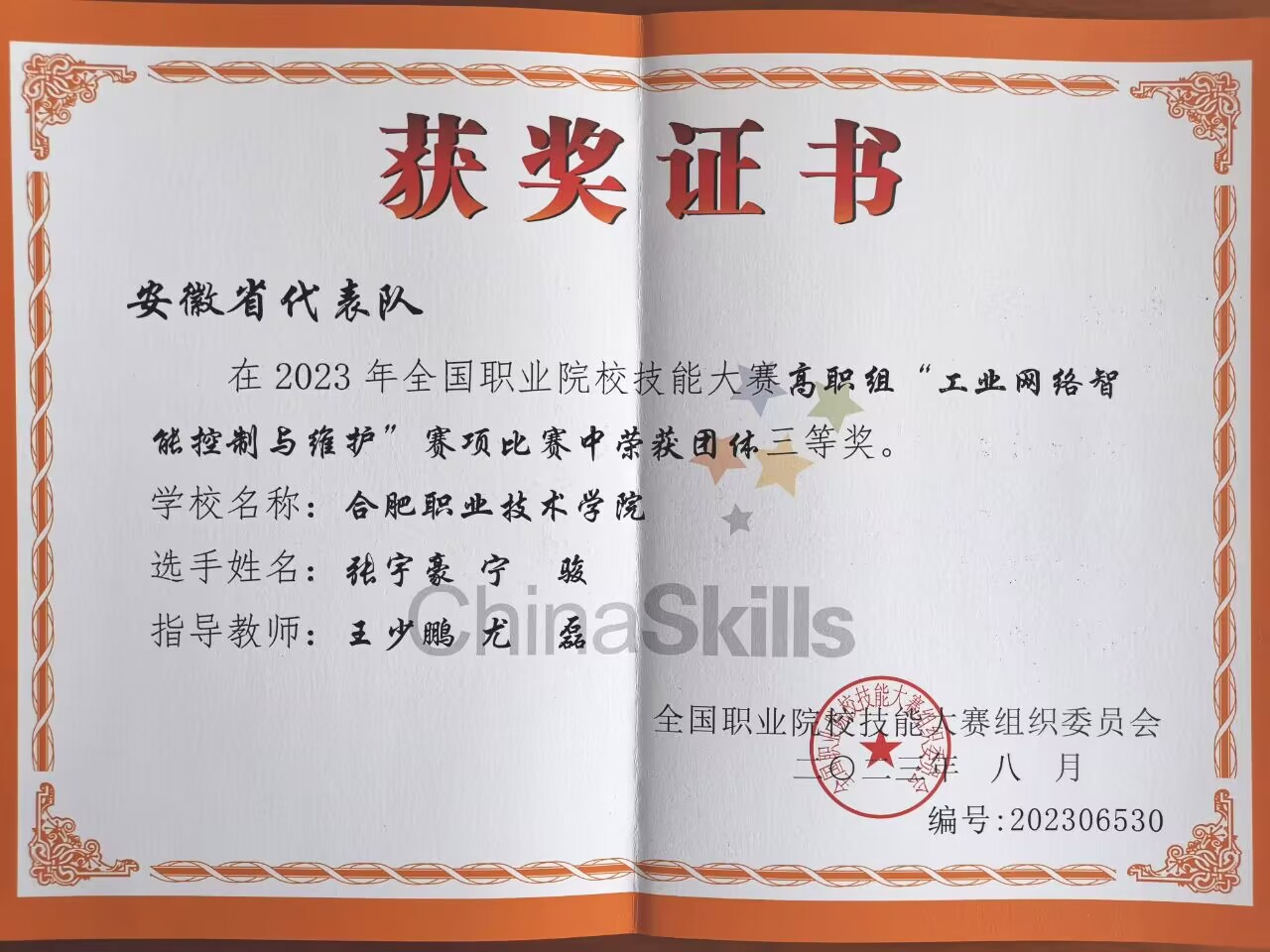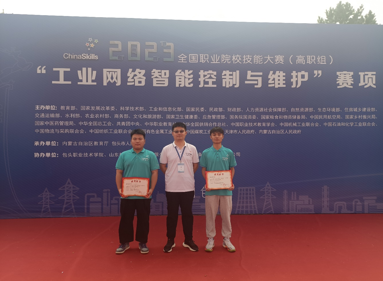 2023年全国职业院校技能大赛高职组新增赛项“工业网络智能控制与维护”已于8月15日至16日在包头职业技术学院圆满举行。永利官网张宇豪、宁骏两位选手发挥出色,荣获团体三等奖 。