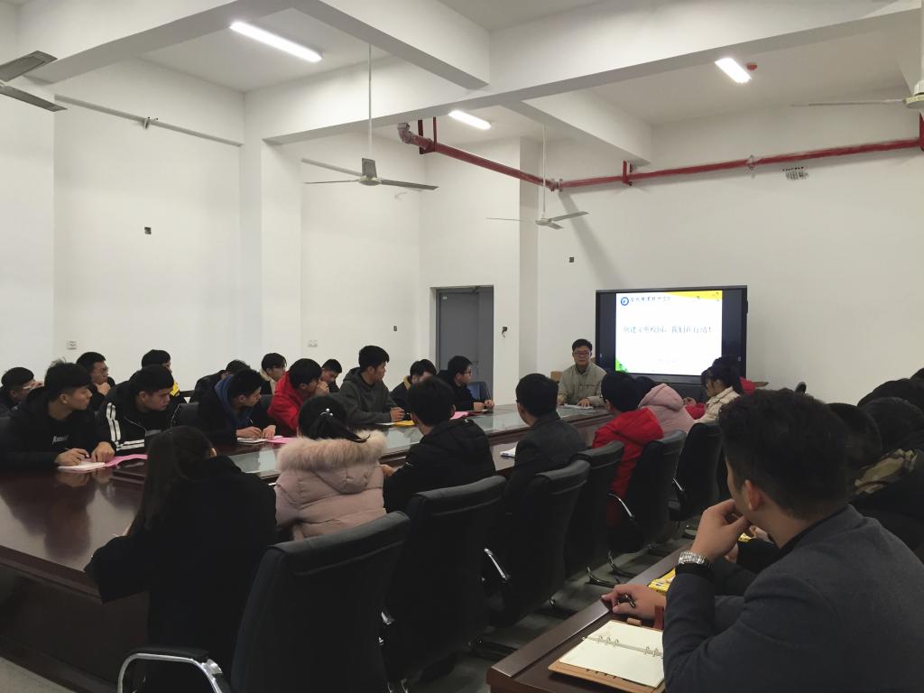 为进一步美化校园环境,营造温馨舒适的生活环境,争创省级文明校园,yl23411永利集团官网于1220日下午在机电楼二楼会议室召开了主题为 “创建文明校园,我们在行动”团学主要干部动员会。学院团总支委员、学生会主席团成员、学生会各部门部长以及各在校班级班长参加此次会议。会议由院党总支副书记(主持工作)王克勇主持。
