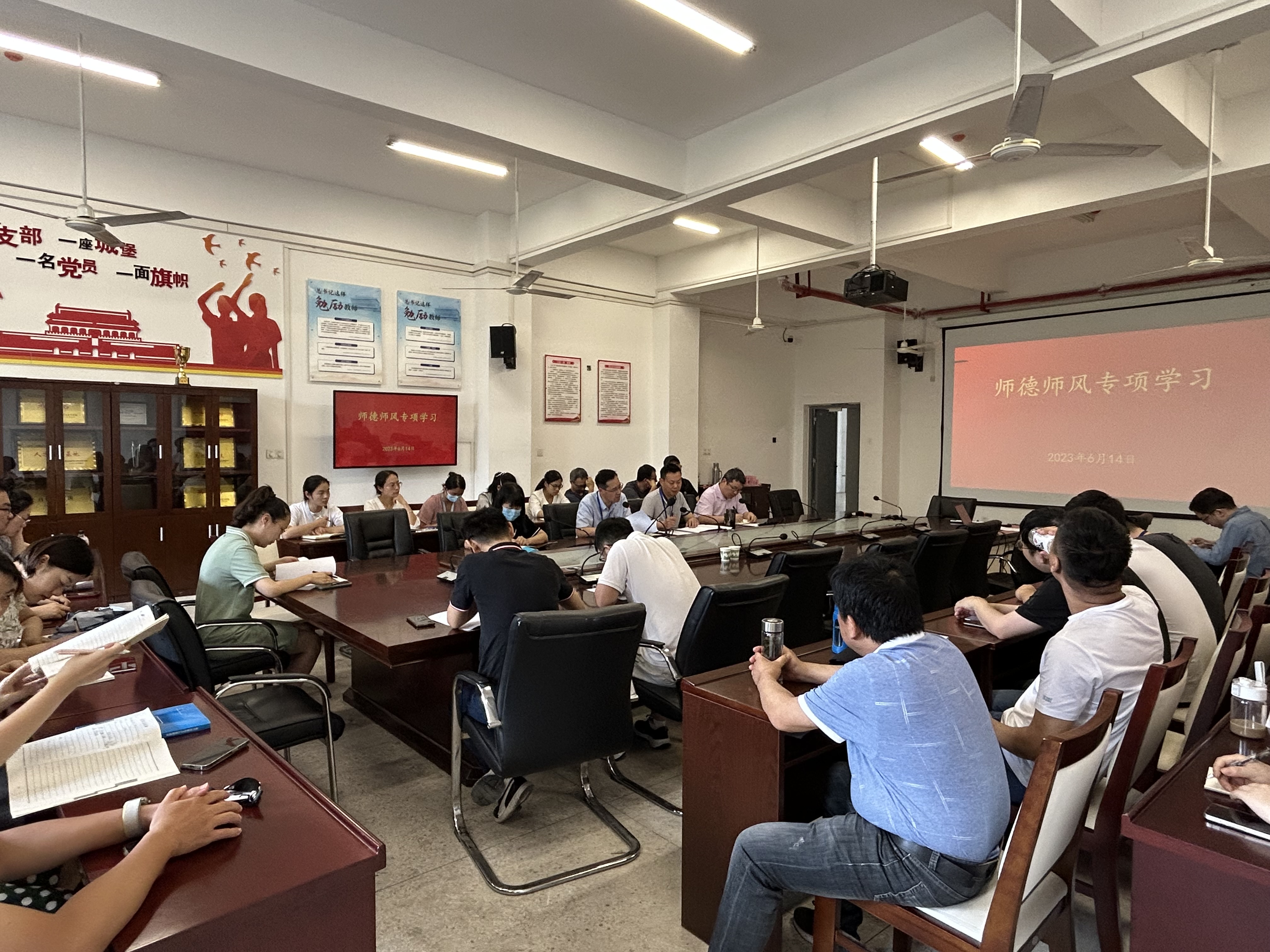 6月14日,yl23411永利集团官网在机电楼二楼会议室召开六月份党员活动日暨师德师风专项学习活动,yl23411永利集团官网全体教职工参会,会议由党总支副书记丁迎春主持。