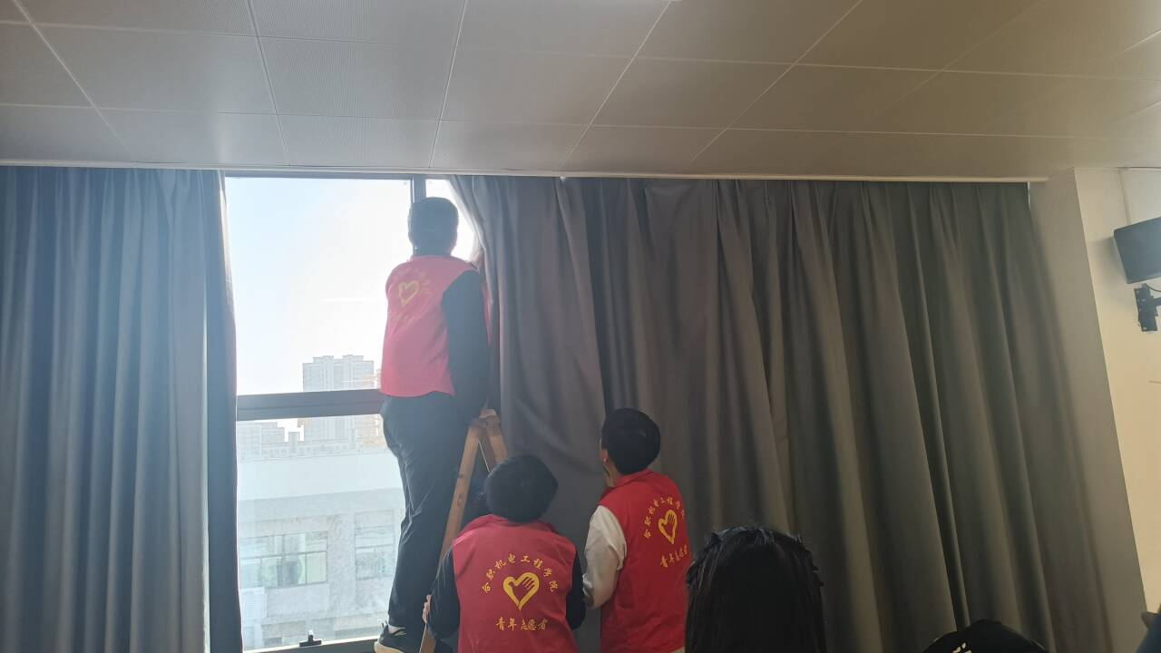 本次活动旨在通过维修教室桌椅践行“我为师生办实事”的志愿服务活动,同时改善校园学习环境,提升同学们的学习体验。在活动现场,志愿者们分工明确,活动分为两个环节:一是志愿者们集中检修缺少螺丝的桌椅,并对其进行加固;二是志愿者们在教室对讲台的键盘桌、掉落的窗帘进行修复。活动过程中,志愿者们充分发挥自己的专业优势,带着膨胀螺钉、螺丝刀、钳子、锤子、扳手等工具,对已损坏的课桌椅、窗帘进行加固、维修,志愿者们通力合作,互相帮忙。经过一个下午的共同努力,10多把“摇摆”的椅子、5个散落的窗帘、2个失灵键盘桌终于又投入正常使用了。