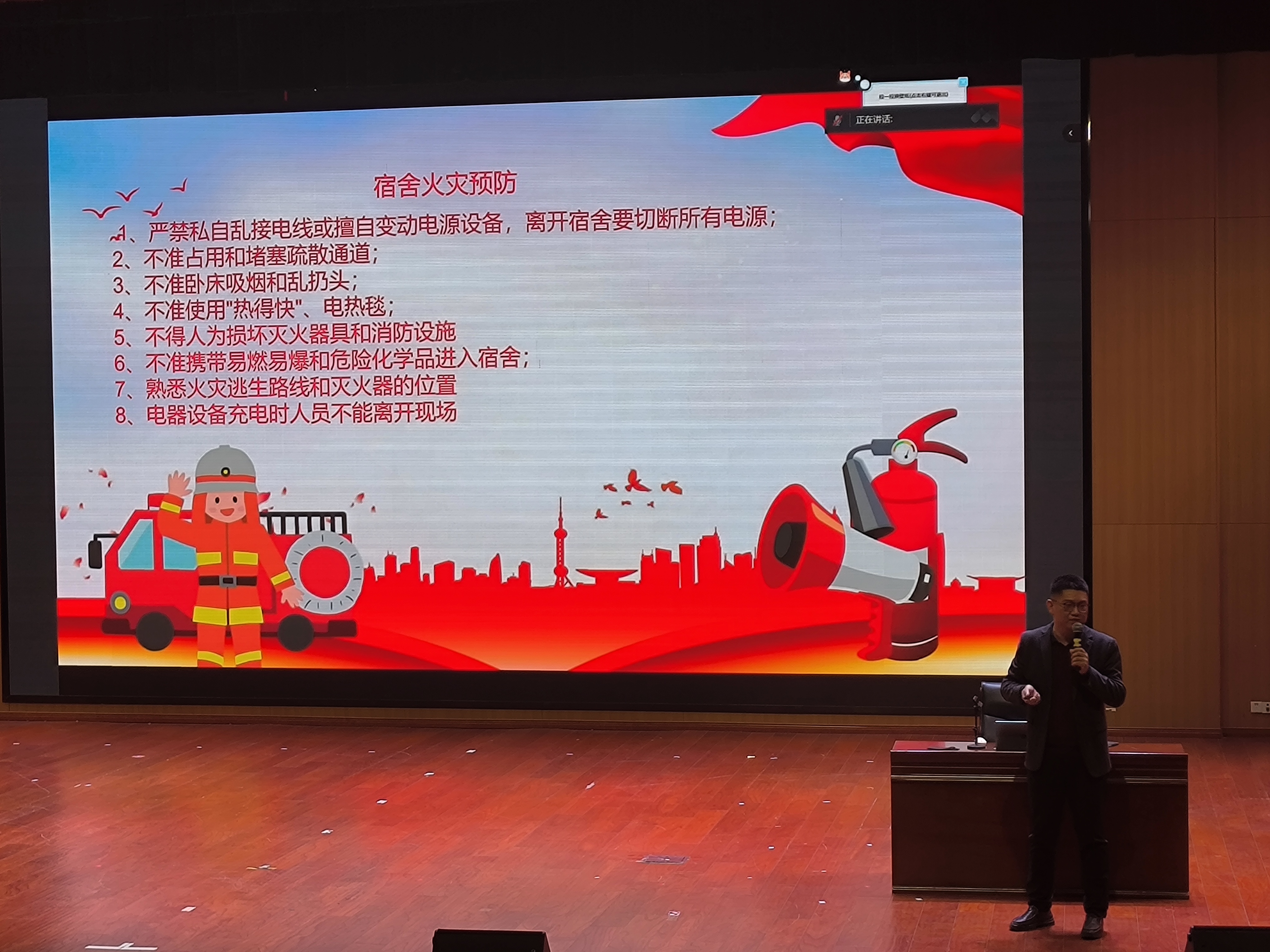 为切实加强学院安全工作,提高学生安全防范意识、安全疏散与自救能力,保障师生生命安全,打造平安校园,在学校保卫处大力支持下,yl23411永利集团官网于11月7日下午在大学生活动中心二楼报告厅对24级全体学生开展消防安全知识教育宣讲。本次讲座特邀消防培训讲师唐晨龙工程师担任主讲。校保卫处处长王继强现场指导,该院党总支副书记丁迎春(主持工作)主持。