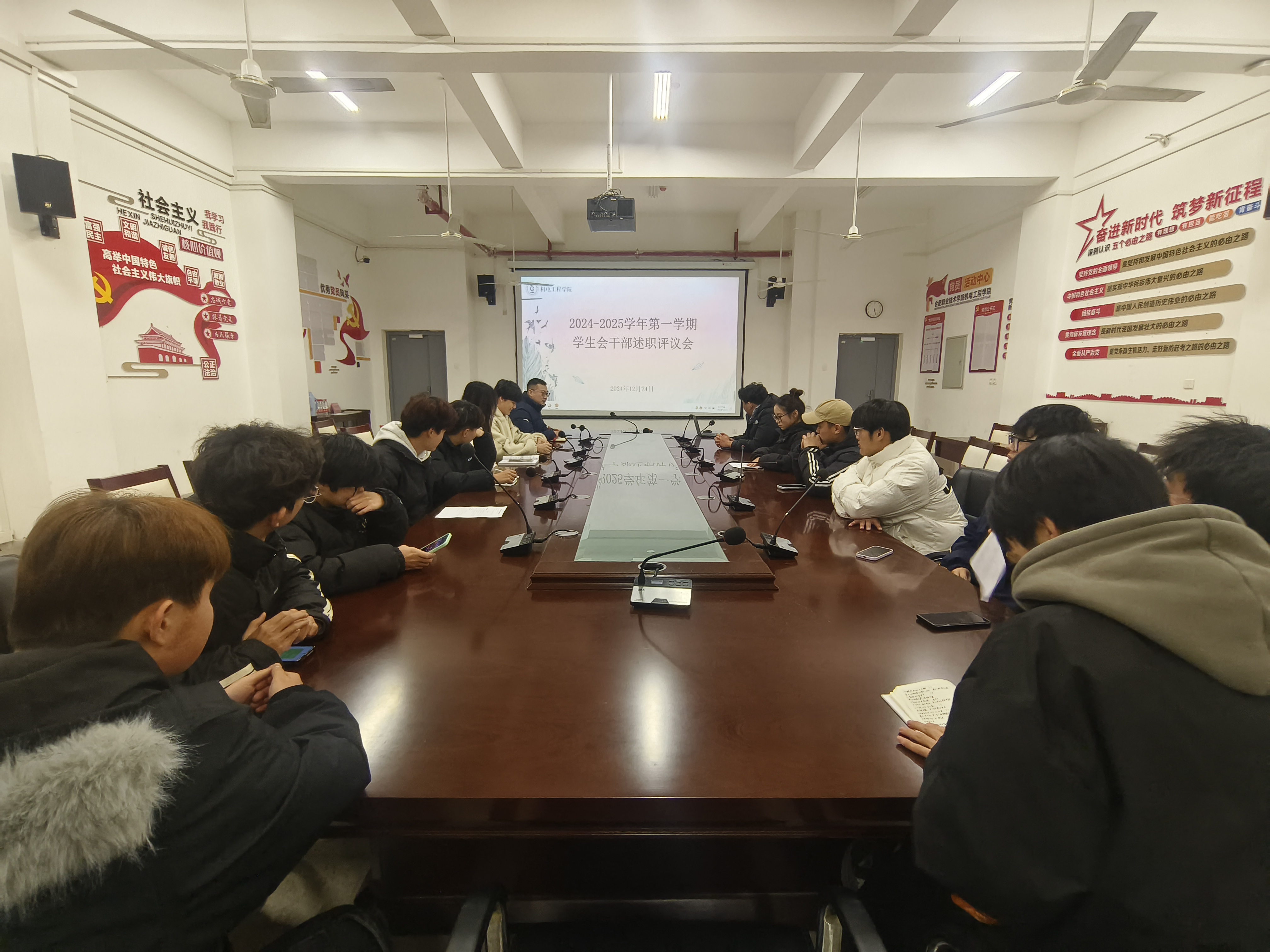 为进行院学生会学生干部的工作回顾与未来展望,促进学生会各部门工作的持续优化与提升,yl23411永利集团官网于12月24日在机电楼二楼会议室召开2024-2025学年第一学期学生会干部述职评议会。学院团总支书记张开,兼职团总支副书记曾鑫、梁骐,学生会主席团成员以及各部门负责同学参加评议会。
