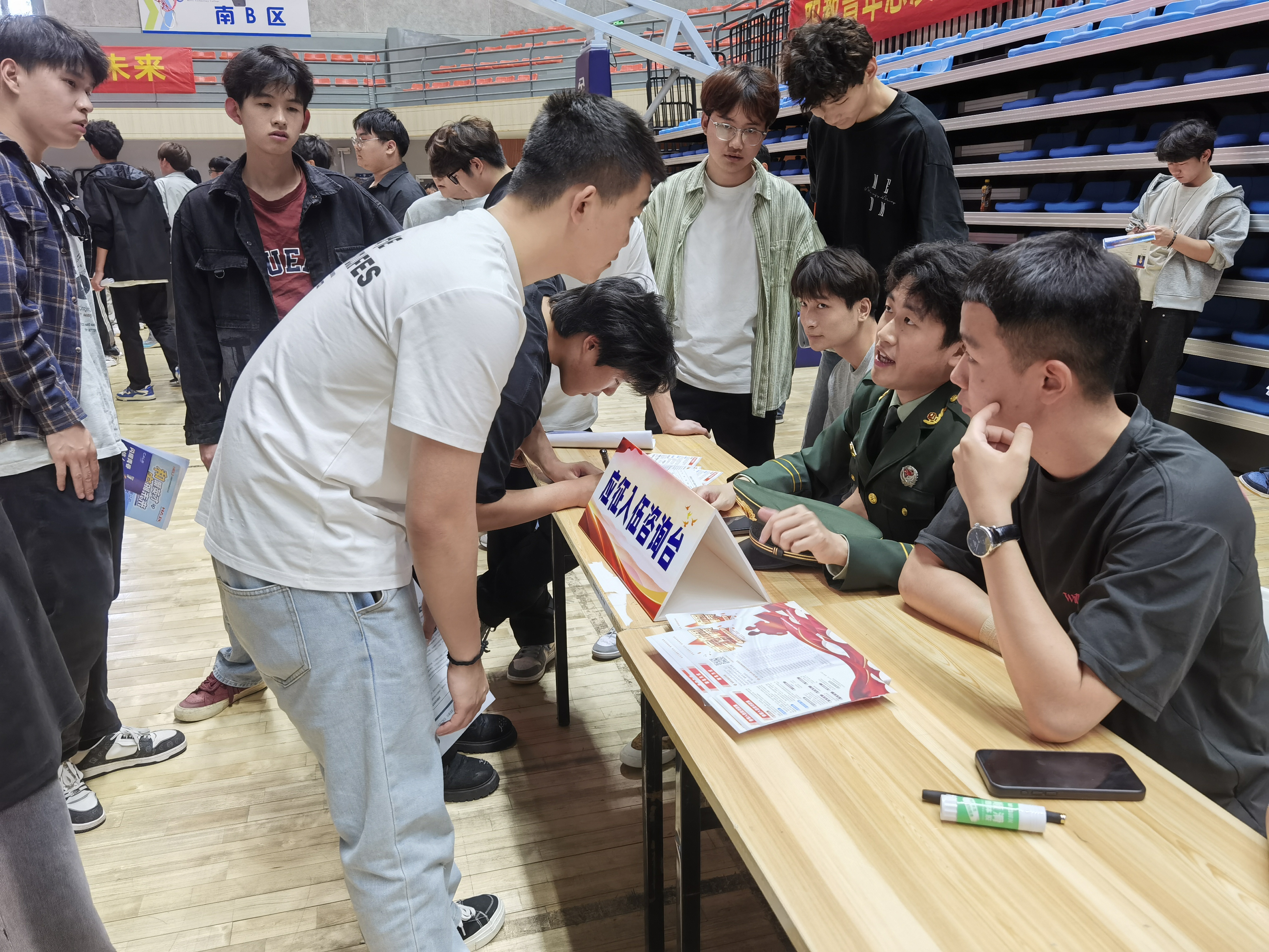 活动中,通过发放宣传手册、问题答疑等多种形式进行了广泛宣传,向学生宣传了征兵条件及优待,号召广大大学毕业生、适龄青年踊跃参与报名参军。