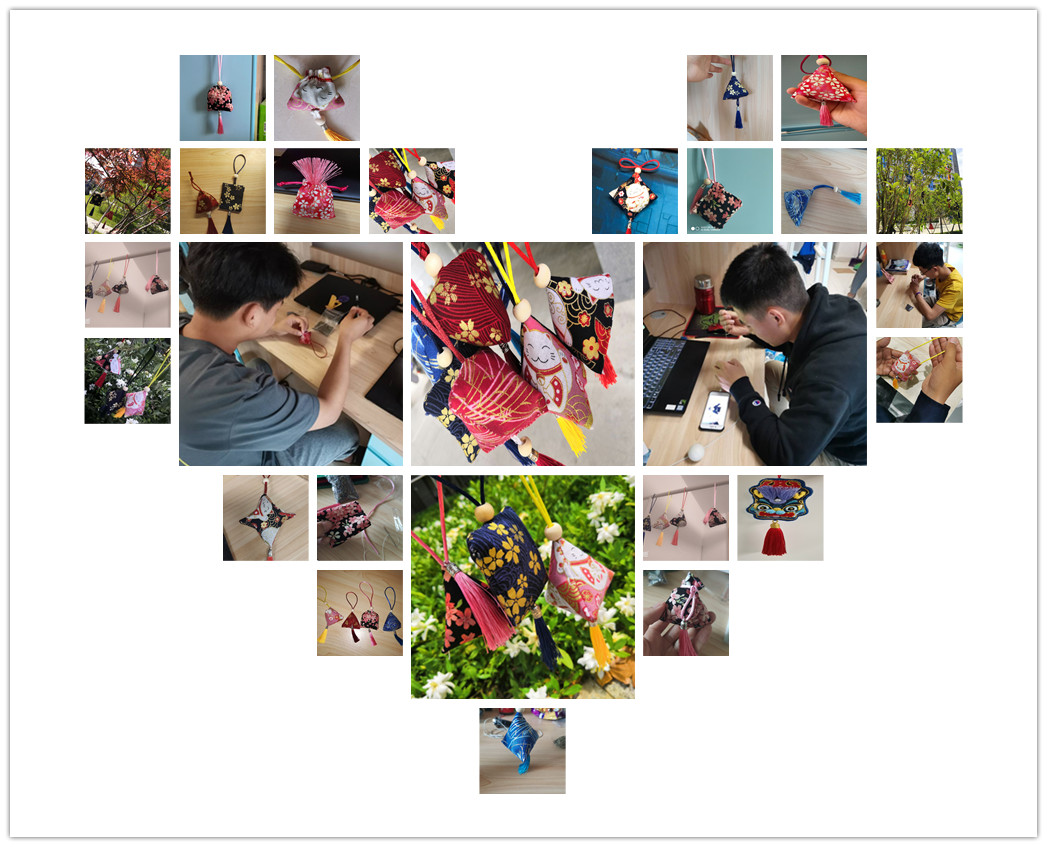 本次活动提前发放艾草、布块、针线等材料包至各班级,然后在班级QQ群中发布制作视频,同学们根据视频在宿舍制作,作品完成后回收剩余材料。
