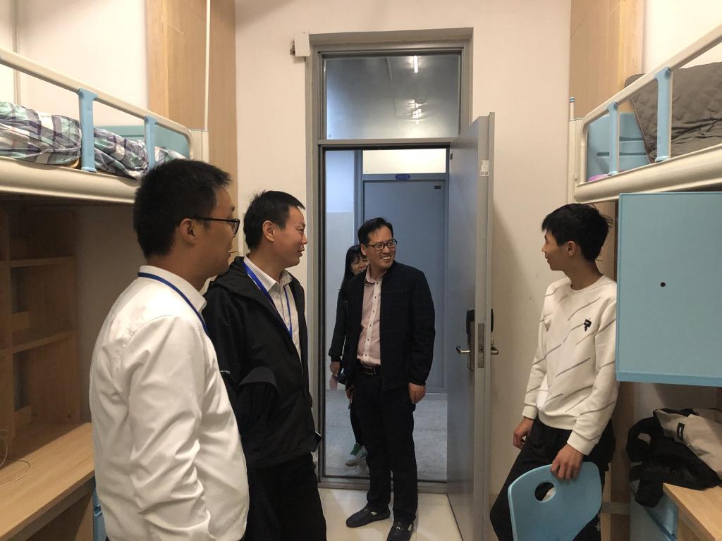 走访过程中,学院领导、老师与同学们进行了亲切交谈,仔细查看公寓环境卫生,了解公寓生活服务设施运行状况,提醒同学们及时报修、注意用电安全。胡木林细心询问新生到校后的生活及适应情况,并鼓励同学们:“室友之间可以多多交流学习、生活以及对未来大学生活的规划,相互帮助,相互鼓励。”还祝愿新生们都可以达到自己理想的目标。