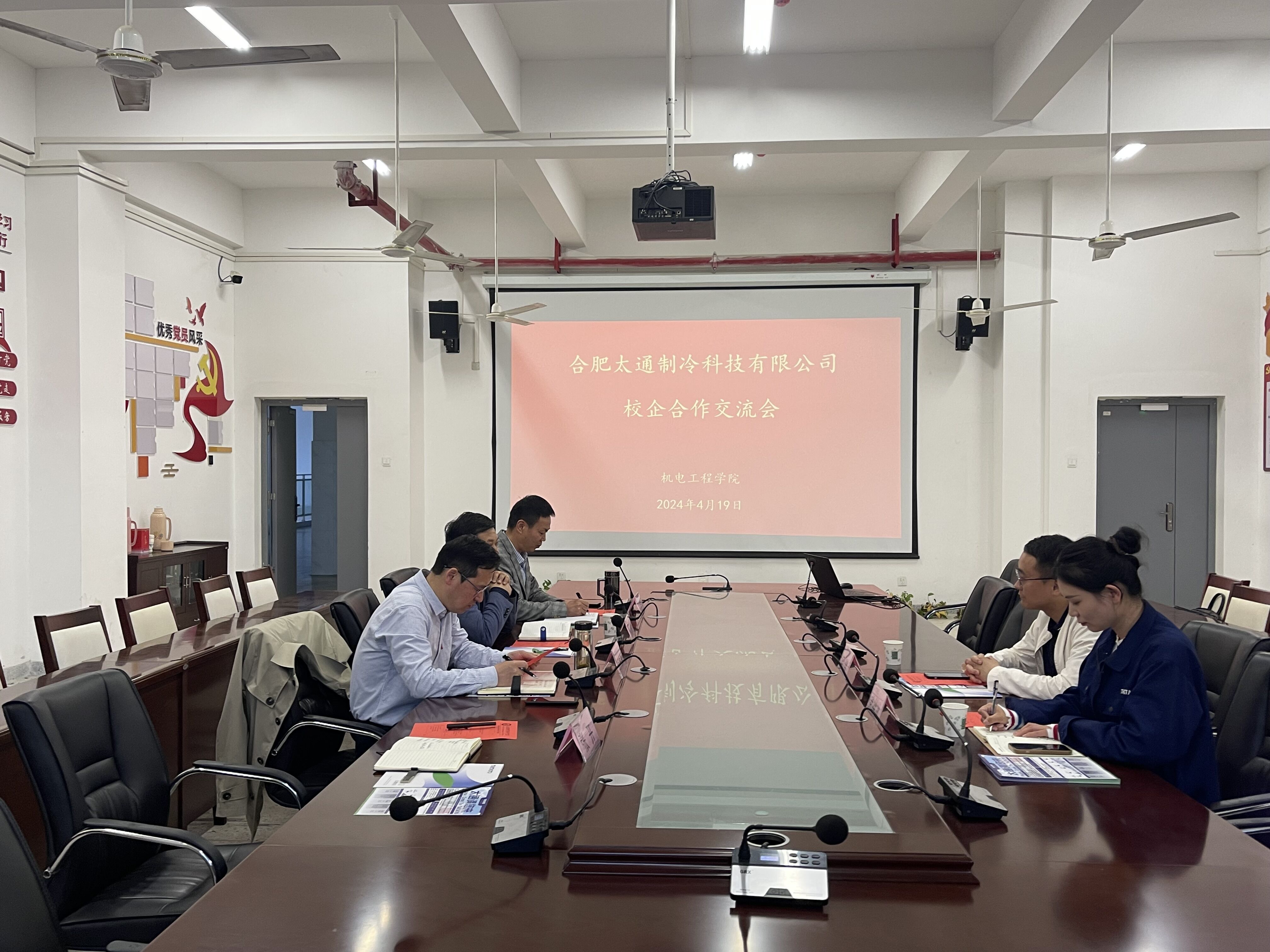 为进一步强化服务地方经济功能,推进校企合作、产教融合多元化发展,4月19日下午,合肥太通制冷科技有限公司行政总监吕涛一行来校洽谈合作事宜。校党委委员、组织人事部部长张如宝,学院院长胡木林,学院党总支副书记(主持工作)丁迎春参与此次洽谈会,会议由胡木林主持。