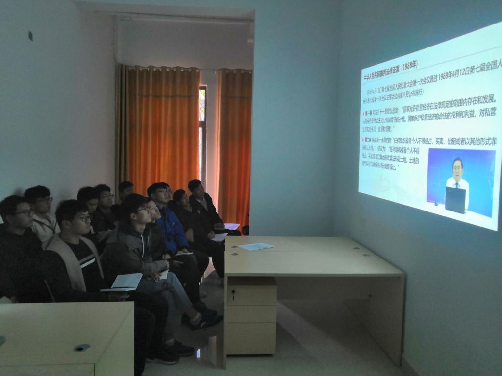 学习宪法,溯本求源。12月6日下午,由yl23411永利集团官网大学生自我管理委员会承办的“结合十九大精神学习宪法修正案要义”的教育活动在学生公寓1号楼107宿舍开展,全体机电学院班长参与学习活动。活动以网络视屏教学的模式展开,各班班长通过学习由中科院法学研究所副所长莫纪宏主讲的《宪法修正案要义》,不仅了解了最新的宪法修正案内容,更深刻理解了宪法修正案的内涵和意义,为班长在各班进一步宣扬宪法精神把住了方向,握住了核心,拿住了要义,为更好的完成“学宪在班级、学宪在寝室、学宪在日常、学宪在经常”的任务奠定了理论基础。