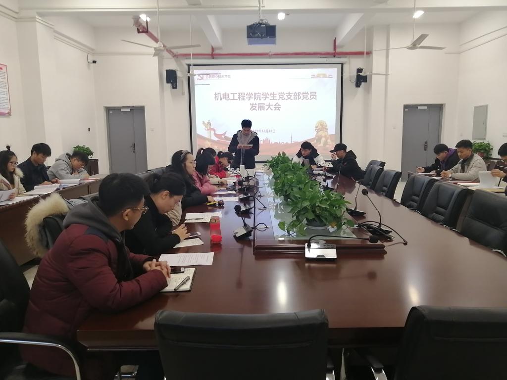 1218日下午yl23411永利集团官网学生党支部在机电楼二楼会议室召开党员发展及转正大会,学生党支部全体党员、培养联系人、6名预备党员及9名发展对象参加了会议。会议由学生党支部书记朱何萍主持。