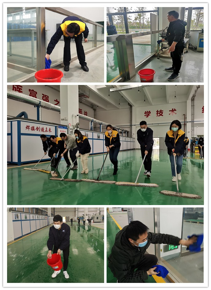 下午,在学院统一号召下,院领导班子带领学院在校教师对机电楼一楼大车间开展了卫生清洁活动。教师们身穿工作服,自带拖把、抹布等工具,化身“最美保洁员”,对车间出入口、地面、实训区、桌椅、门窗、器械设备等区域进行了认真打扫。经过二个多小时的辛苦劳动,在老师们同心协力下的大车间焕然一新。院领导班子表示这样的卫生清扫活动后期还会继续开展,旨在营造一个舒适、安全的环境。这次义务劳动也是yl23411永利集团官网党员教师践行“六个一次” 品牌活动 (当一次志愿者、深入一次宿舍、进行一次谈心谈话、做一次有关学生的调查研究、解决一次学生的实习困难、参加一次学生活动)的实际表现,充分体现了党员老师的先锋模范带头作用。