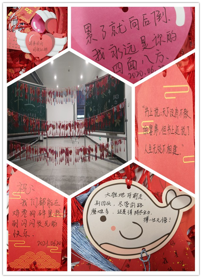 “诸事顺利,前程似锦”、“天下没有不散的宴席,但人生无处不相逢”、“累了就向后倒,我永远是你的四面八方”,一句一句暖心的祝福跃然纸上,实习生们写出了深深的依恋和对未来的无比憧憬,学弟学妹们写出了对学长、学姐诚挚的祝福和鼓励。