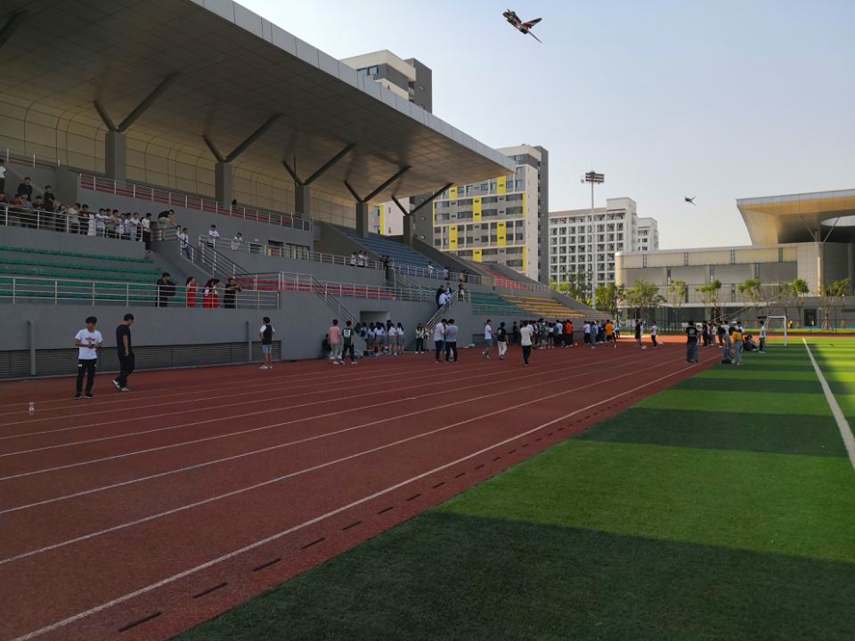第三站是合肥职业技术学院汇心湖校区,协会成员在学校操场为前来观看的同学们献上了精彩绝伦的歼10双机特技飞行表演,落叶飘,横滚,蛇滚,超低空通常等特技动作,赢得在场观众的阵阵喝彩。