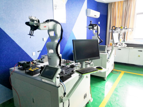 实训室简介:该实训室以ABB工业机器人为主,主要面向机电一体化专业、工业机器人专业《工业机器人技术》、《机器人编程与应用》等课程的实验教学任务及实训,增强学生的专业综合实践能力,针对就业岗位及1+X技能等级证书培训,提升学生在工业机器人“装、调、修、编程”等方面的能力。