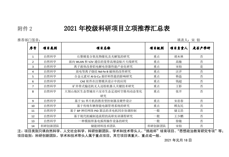 2021年校级科研项目yl23411永利集团官网内部评审及统计工作已基本结束,本次项目申报共有13位老师申请了14个项目,经门户系统的教科研在线评审,永利官网项目均在C级以上,符合推荐,予以全部推荐。现将推荐结果予以公示(见附件)。