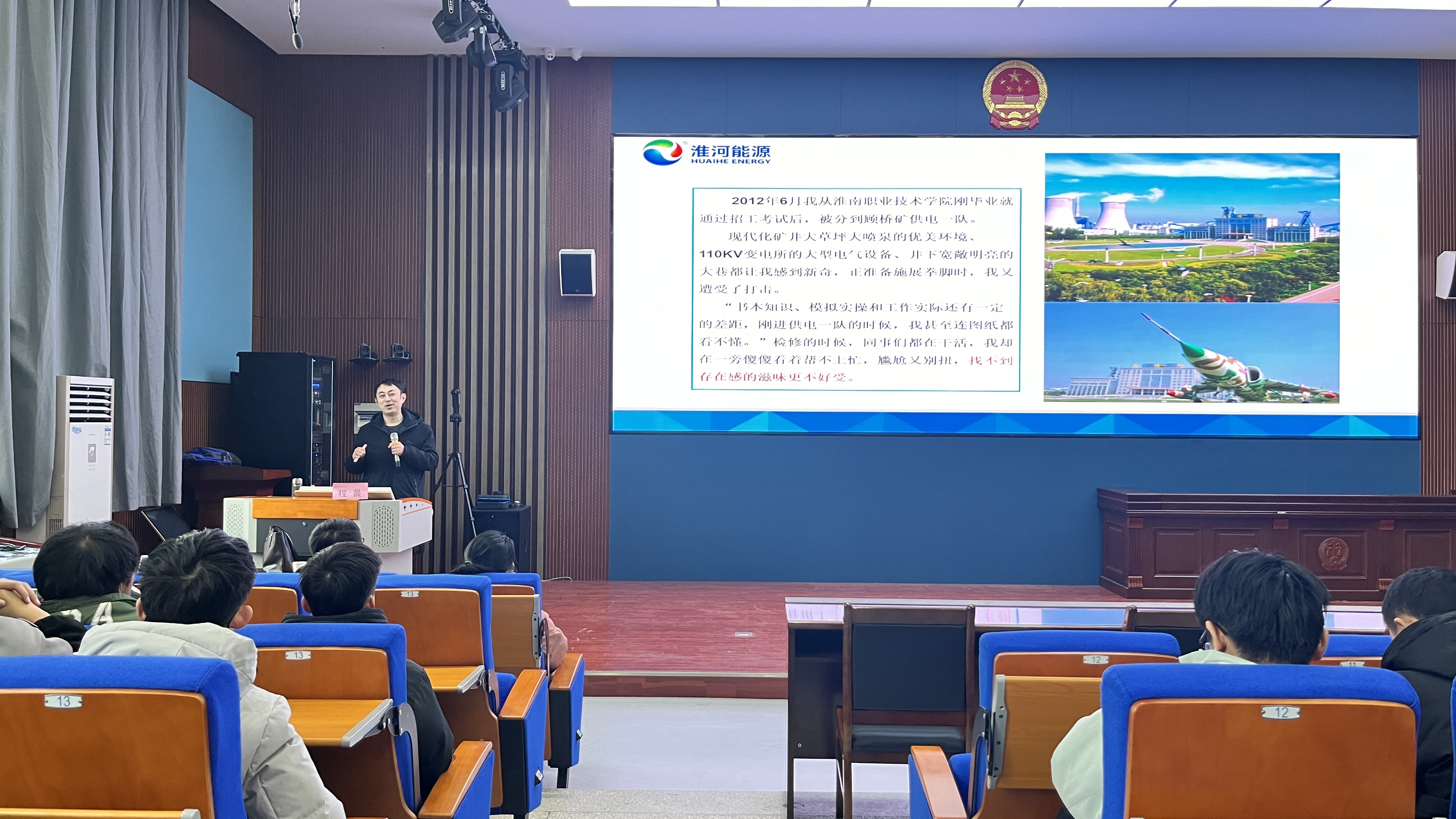 为进一步加强榜样引领,宣传先进,做好学生劳动意识培养、职业素养强化,12月20日下午,yl23411永利集团官网在北教思政馆举办了“匠师进校园”宣讲报告会活动。此次报告会由全国五一劳动奖章获得者、淮河能源集团资深技师程晨同志给大家做分享,学院近200名师生共同聆听了这场精彩纷呈的报告会。