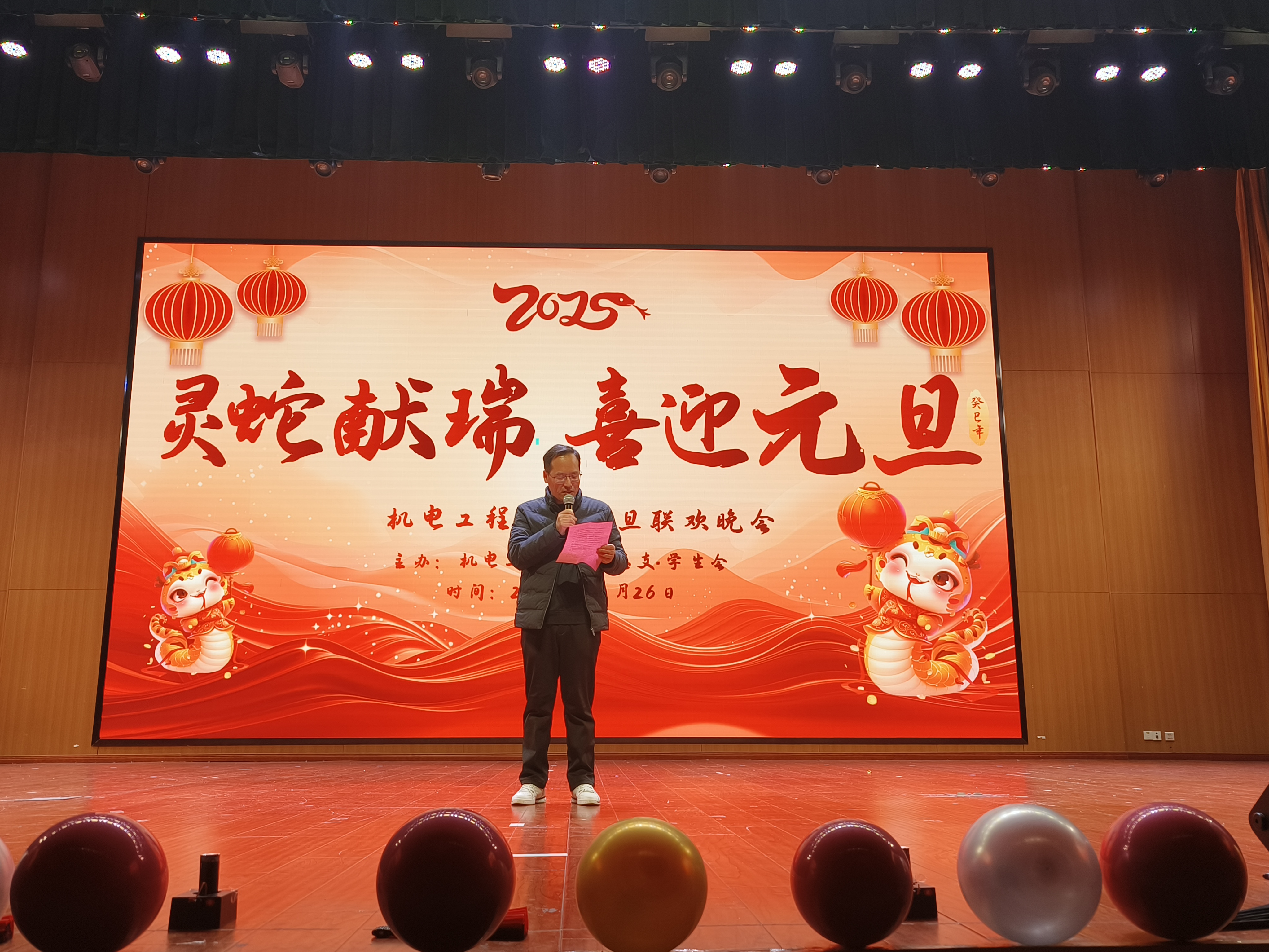 随着节日序曲的奏响,该院院长胡木林上台致辞,他衷心感谢为此次晚会付出努力的老师和同学们,并对机电学院这一年里在教学改革、科研创新及校园文化建设等多个方面取得的工作成果进行了回顾和总结,寄语全院师生在新的一年能够勇攀高峰,扬帆远航。
