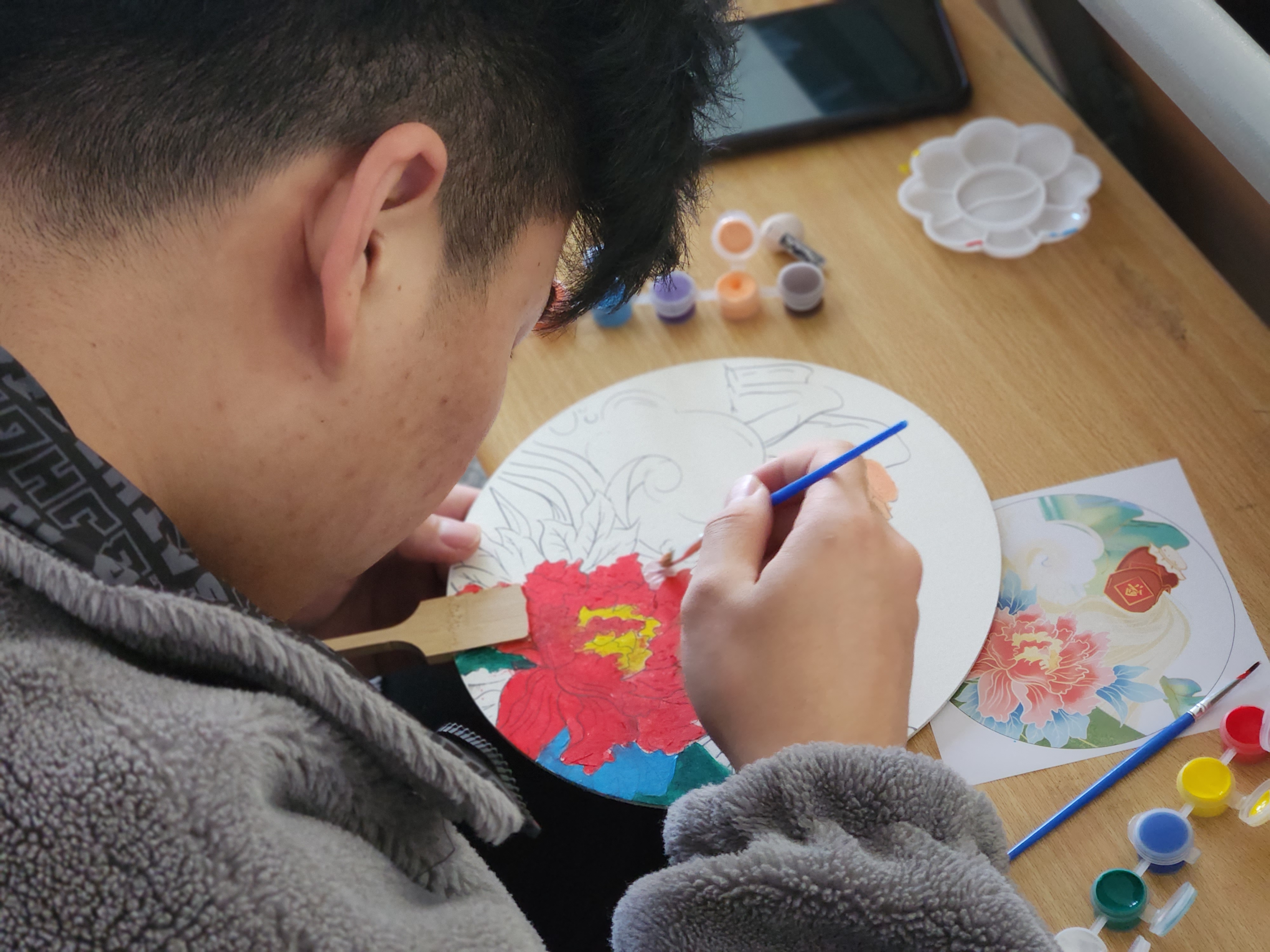 活动开始,负责人简单讲述了绘画团扇时调色和上色需要注意的事项。在了解大致流程后,待志愿者分发了团扇、颜料及调色盘等绘画工具后,同学们个个专心致志,着手绘画自己手中的团扇,空白的扇面逐渐被一笔笔颜料覆盖,图案慢慢清晰了起来。不多时,一把把精美的团扇相继完成,经过颜色填充的团扇充满古色风韵,让同学们爱不释手,兴高采烈地拿起团扇合影留念。活动结束后,同学们说:“这种清明寄托相思的方式既表达了追思,同时又绿色环保。此次活动既慎终追远、纪念先贤,也歌咏光明、赞美春天,传递了大家对伟大祖国的美好祝愿。”