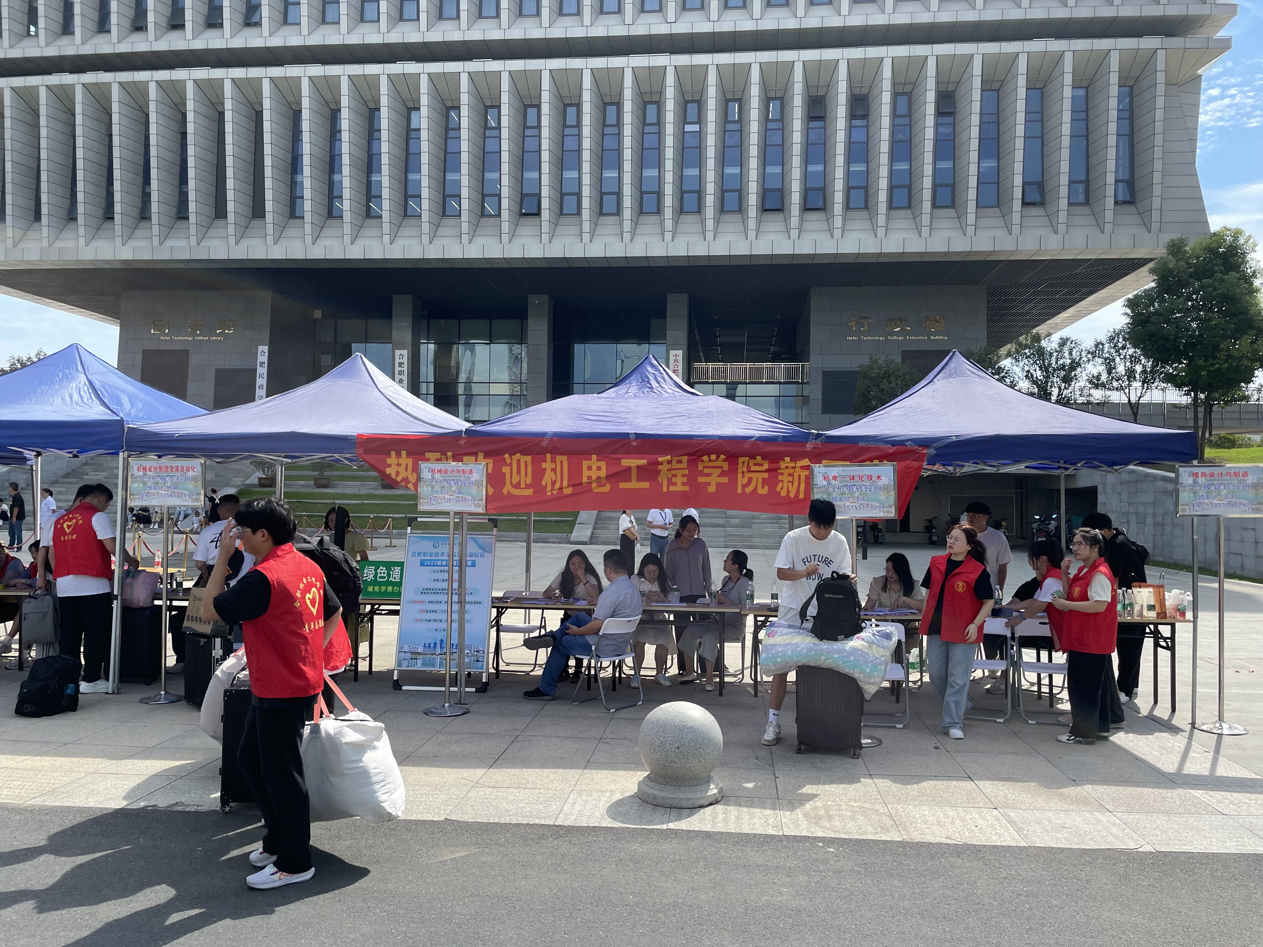 为全面保障此次迎新工作的顺利开展,学院精密组织、周密部署,以“高效、便捷、暖心”为宗旨,采取“一站式报到服务”,力求让每一位新生在开学报到时感受机电大家庭的温暖与热情。上午7点,志愿者各组便到达预备位置,大家身着志愿者服装,怀着热情协助新生搬运行李,耐心解答新生疑问,积极介绍校园环境,用良好的精神面貌展现机电学子的澎湃热情与卓越风采。