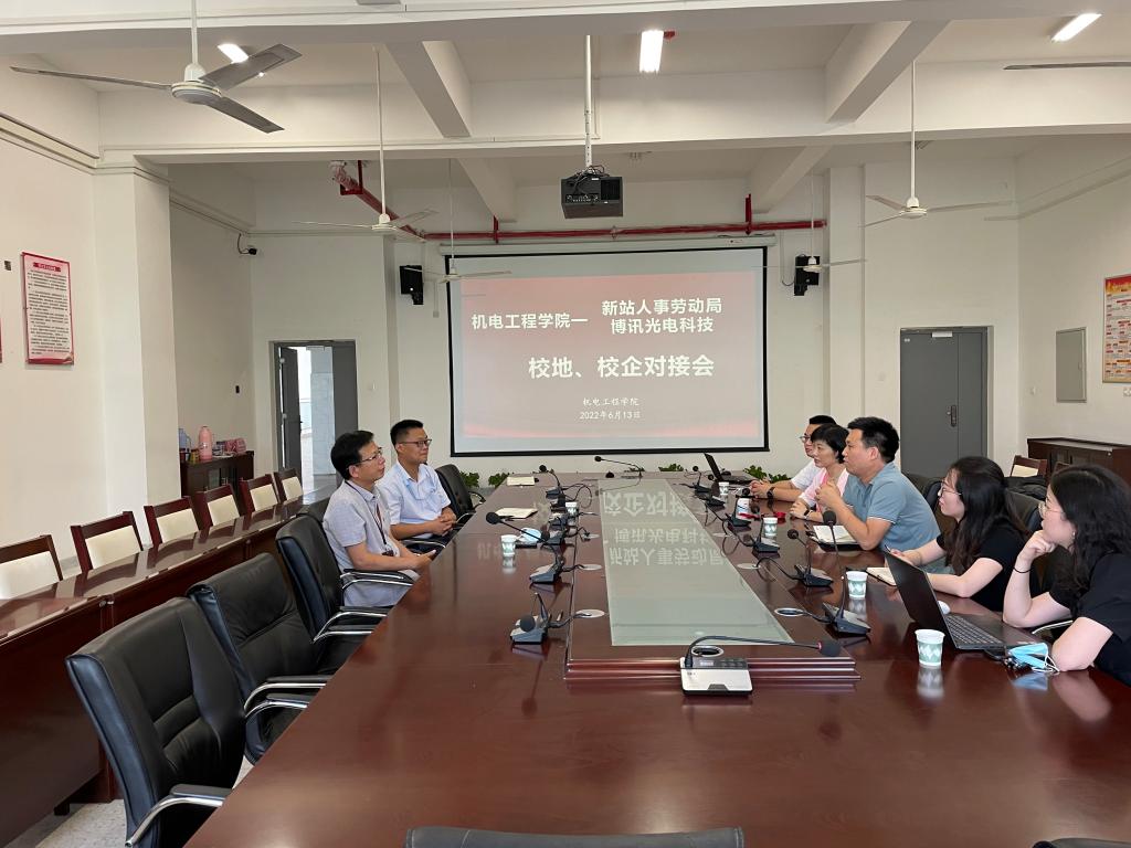 为进一步加强校企合作,深化产教融合,6月13日下午新站区人事劳动局携博讯光电(合肥)股份有限公司一行来访yl23411永利集团官网,校党委委员、办公室主任王海,yl23411永利集团官网党总支书记王克勇,院长胡木林和相关教师参加了此次对接会。